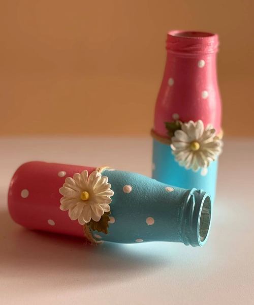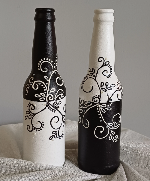 Bottle art is one of the most creative and trending forms of handmade home decor in India. These beautifully designed painted glass bottles are crafted with artistic detail, making them perfect for adding elegance and uniqueness to any space.